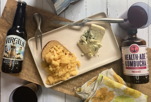 AmaBlu Blue Cheese & Cranberry or Pomegranate Kombucha: The tart, sweet, slightly vinegary profile of the Kombucha plays nicely with the sweetness characteristic in AmaBlu. Plus, Blue cheese loves bubbles. This combo is sure to pack a punch of flavor.